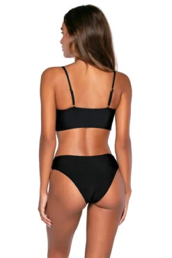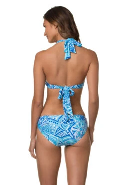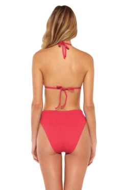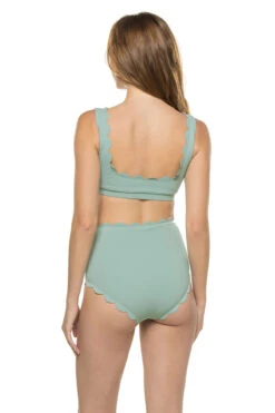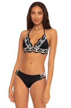 Avery banded triangle bikini top features a two-tone scalloped crochet trim and removable soft cups and offers adjustable ties around the neck and back.