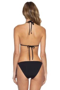 Juliet bralette bikini top features a shirred neckline with removable cups and offers adjustable shoulder straps and a supportive under bust band.