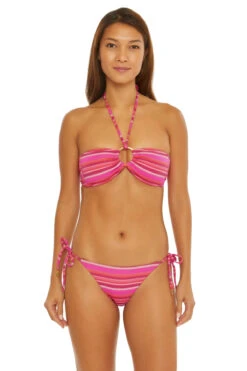 Marai bandeau bikini top features a center ring detail with removable molded cups and offers adjustable neck and back ties with charm details.