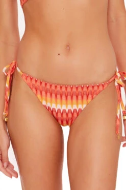 Sunray hipster bikini bottom offers adjustable string ties at hips and moderate coverage.