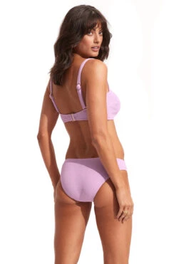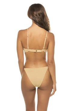 The cutest way to go from beach to boardwalk. This t-shirt style bikini top can be worn with the tie in the front for a flirty look, or the tie in the back for a sporty vibe. The Zoe features off-the-shoulder sleeves so you have complete mobility for biking down the beach or skating the strand.